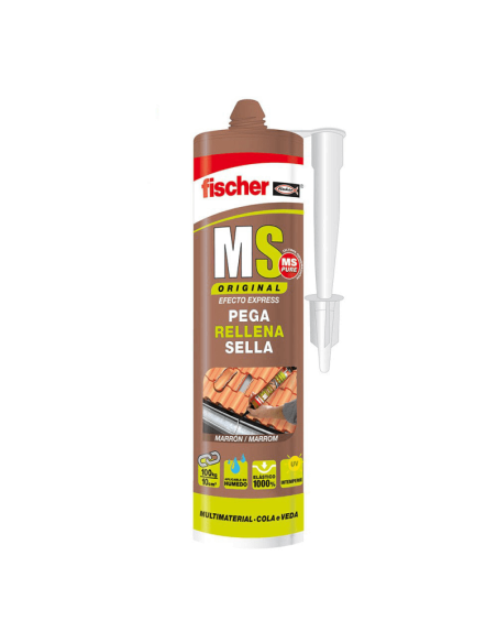 Ms sellante adhesivo marrón 290ml pega sella rellena elástico 1000% 100kg/10cm2 aplicable en húmedo intemperie