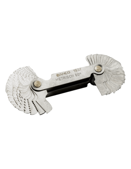- Galgas de roscas de 52 hojas, con sistema métrico de 60º y sistema Whitworth de 55º.