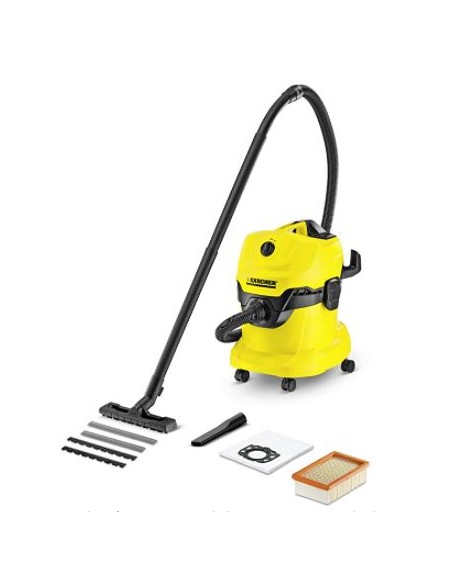 El aspirador multiuso WD 4 Premium de gama media dispone de un robusto depósito de acero inoxidable de 20 l resistente a la corrosión y un filtro plegado plano en un cartucho filtrante que se retira plegándolo hacia fuera de forma fácil, rápida y sin ningún contacto con la suciedad. El filtro es ideal para la aspiración en seco y húmedo sin cambio del filtro. El aspirador multiuso es súper potente, con un consumo eléctrico de tan solo 1000 W.