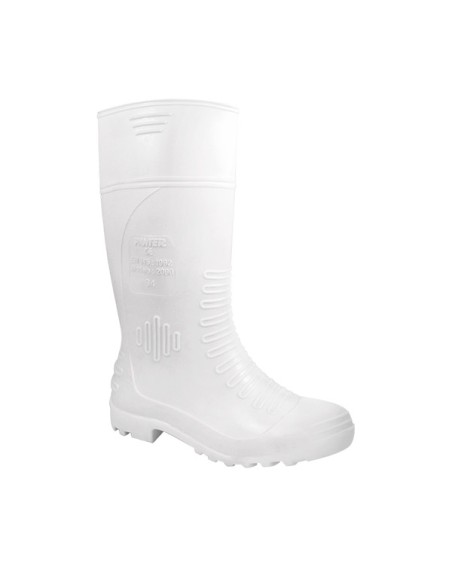 Bota alta blanca antibacterias con cobertura 100% impermeable. Fabricada en PVC + Caucho Nitrilo, con alta resistencia a grasas animales, aceites vegetales, sangre... Especialmente destinada a su uso por la industria cárnica, alimentaria, etc.