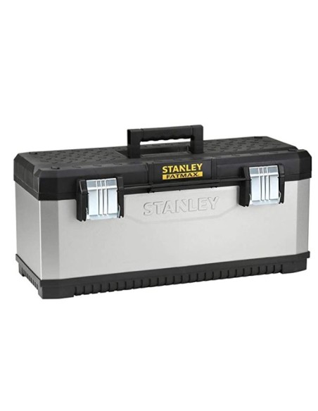 Caja de metal y plástico. Gracias a su altura adicional permite almacenar las herramientas verticalmente. Cierres metálicos antioxidantes. Posibilidad de cierre con candado. Mango bimateria ergonómico. Ranura en la tapa en forma de V. Bandeja interior.