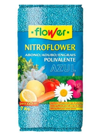 El Nitroflower-Abono Polivalente Azul es un abono granulado para abonar todo tipo de cultivos de exterior, como plantas y setos. Especialmente usado para el huerto doméstico, en el que ayuda al engorde de las frutas y hortalizas.