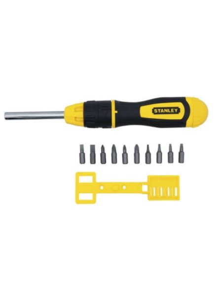Portapuntas magnético acoplable con capacidad para 4 puntas. Mango bimateria para máxima torsión con mínimo esfuerzo. Mecanismo de carraca. El destornillador incluye 10 puntas diferentes.