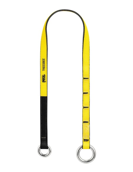 La cinta de anclaje TREESBEE favorece el deslizamiento de la cuerda al nivel del anclaje a la vez que protege el árbol de rozamientos. Está destinada a las cuerdas con terminales injeridos (el terminal pasa por el anillo pequeño).
