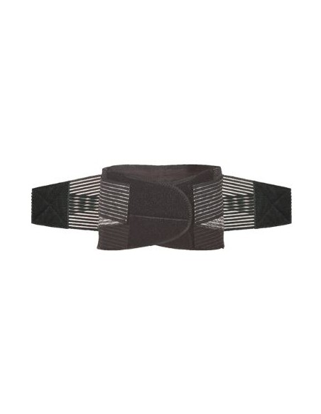 Faja dorso-lumbar elástica que proporciona una mayor protección y comodidad debido a su sistema de doble banda elástica lateral que regula el apoyo lumbar necesario en cada actividad y dependiendo del esfuerzo, sin necesidad de recolocar la misma.