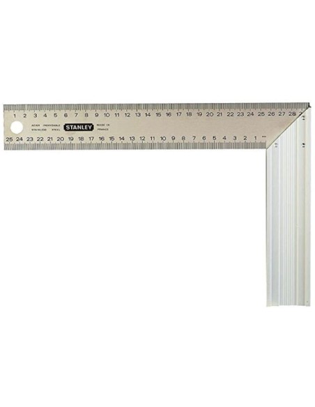 - Escuadra angular (45º). Talón de perfil de aluminio. Lámina de acero inoxidable grabada (procedimiento GRAVEMAT)