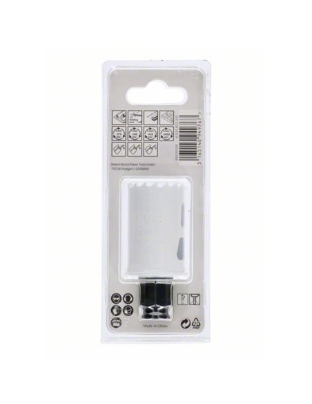 La sierra de corona BiM Progressor ofrece el doble de vida útil que su predecesora. Se ha rediseñado con bimetal Bosch, con un 8 % de aleación de cobalto para aumentar la durabilidad. Además, cuenta con una tira de dientes progresiva mejorada que permite efectuar cortes más rápidos. Utilice esta sierra de corona para practicar orificios en madera, mampostería, plástico, metal, metales no ferrosos y acero inoxidable.