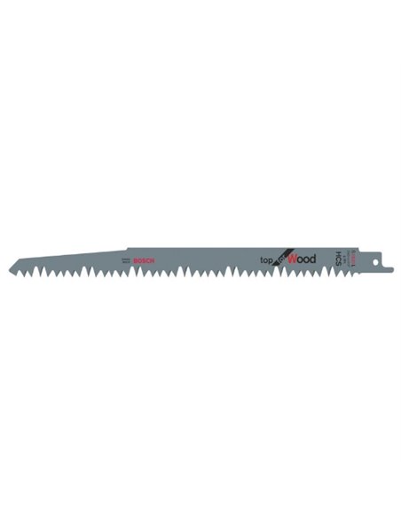 La hoja de sierra sable S 1531 L Top for Wood ofrece cortes rápidos para poda de madera. Sus dientes puntiagudos y afilados son excelentes para poder con precisión y evitar daños a las plantas. Además, el gran espacio entre dientes de la hoja (5 mm) y las grandes gargantas retiran el material rápidamente, permitiendo un corte rápido. Al estar hecha de HCS (acero de alto contenido de carbono), esta hoja de sierra sable es adecuada para podar madera verde. Tiene una longitud larga de 240 mm que ofrece una capacidad de corte de hasta 190 mm.