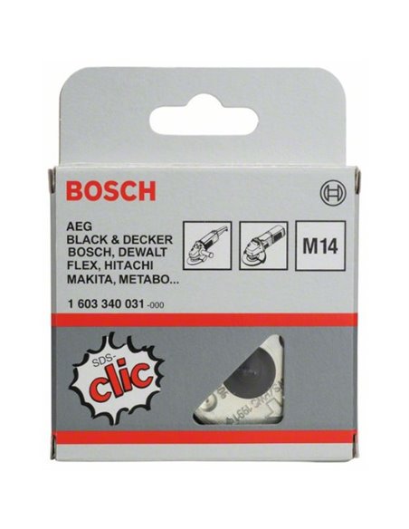 La tuerca de bloqueo rápido M14 SDS clic es una tuerca de liberación rápida para la sujeción y el aflojamiento sencillos y rápidos de un amplio rango de accesorios de amoladoras, tales como cabezales rectificadores, discos de corte de diamante y discos de desbaste. Es adecuado para su utilización en todas las amoladoras que tienen rosca M14 y que se fabricaron en o después de 08/90. El disco debe centrarse en el anillo de refuerzo de apoyo y no en la tuerca.