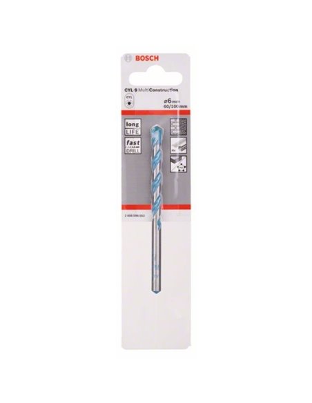 La broca CYL-9 Multi Construction consigue una perforación estable en todo tipo de materiales. Su punta de centrado proporciona una perforación constante y un buen guiado en general. La tecnología de soldadura y endurecimiento AWB optimizada para el diámetro aumenta la solidez de la broca de 2 filos cortantes y reduce la vibración durante el uso. Además el diseño de 4 espirales de la broca con sección central reforzada proporciona una mejor resistencia al desgaste y mayor estabilidad cuando se perfora hormigón blando. La broca está pensada para casi todos los materiales de fijación en interiores, p. ej. hormigón blando, mampostería, ladrillo, amianto-cemento, materiales de construcción ligeros, materiales multicapa, cerámica y azulejos, madera, plástico, láminas metálicas delgadas y aluminio. La broca MultiConstruction CYL-9 cuenta con aristas de corte afiladas con diamante y una punta de afilado especial que la convierten en la broca perfecta para perforar en múltiples aplicaciones. La punta está compuesta por carburo de alta calidad y durabilidad, tiene una vida útil extralarga y ofrece la máxima resistencia al desgaste. Como prueba de calidad, la broca lleva la marca de calidad de la asociación alemana de brocas para albañilería (PGM) que garantiza el cumplimiento de tolerancias estrictas, perforación precisa y firme sujeción de las fijaciones.