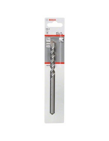 La broca CYL-3 proporciona un rendimiento duradero al perforar hormigón. Su fortaleza es el resultado de una mezcla de carburo de alta durabilidad especialmente desarrollada y fabricada por Bosch. Esta mezcla ha sido diseñada para satisfacer la demanda de un uso continuo y ofrece una alta resistencia al desgaste cuando se trabaja con hormigón. Además el eficaz diseño en forma de U con 2 espirales de la broca resulta ideal para eliminar el polvo y reduce la fricción, así como la generación de calor y desgaste, consiguiendo una vida útil prolongada. La broca ofrece un rendimiento duradero al taladrar orificios para fijaciones en materiales abrasivos como el hormigón y la piedra natural. Como prueba de calidad, la broca lleva la marca de calidad de la asociación alemana de brocas para albañilería (PGM) que garantiza el cumplimiento de tolerancias estrictas, perforación precisa y firme sujeción de las fijaciones.