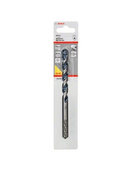La broca CYL-5 garantiza una durabilidad extralarga al perforar hormigón y piedra. La combinación de una mezcla de carburo desarrollada internamente por Bosch y las aristas de corte afiladas con diamante proporcionan a la broca una resistencia extrema al desgaste. La fricción con el material perforado se reduce notablemente gracias al diseño múltiple de 2 espirales con una breve inclinación variable que facilita la eliminación de polvo y la reducción del desgaste. El sistema de vástago PowerGrip de Bosch permite una transmisión de la fuerza del 100 % de la máquina a la broca. Esto permite el uso directo de la fuerza para taladrar sin pérdidas de potencia, lo que conlleva un menor desgaste. Uso: taladrar orificios para fijaciones en hormigón, piedra natural y artificial. Como prueba de calidad, la broca lleva la marca de calidad de la asociación alemana de brocas para albañilería (PGM) que garantiza el cumplimiento de tolerancias estrictas, orificios perforados con precisión y firme sujeción de las fijaciones.