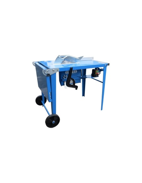 Cortadora de madera con ruedas para facilitar el desplazamiento de la máquina.