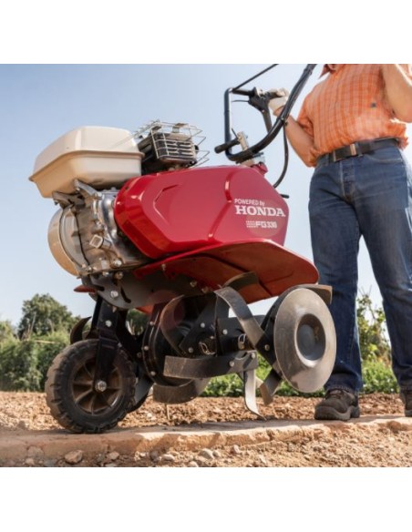 Motoazada Honda FG330 para huertos pequeños y medianos. Maniobrable y potente, con 2 velocidades adelante y 1 atrás. La mejor relación calidad-precio de su categoría.