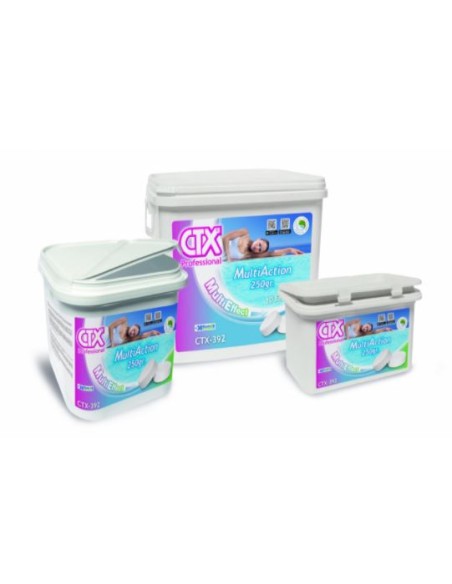 Tratamiento de mantenimiento: Con el pH del agua ajustado, añadir 1 tableta de CTX-392 MultiAction 250gr. por cada 20 m3 de agua 7 o 10 días.