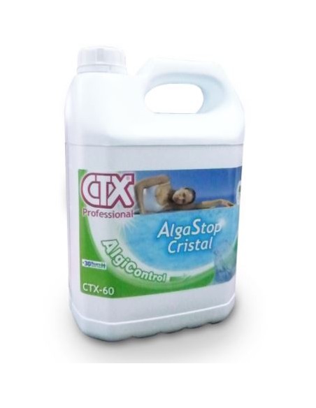 Antialgas concentrado que previene la formación y el desarrollo de algas en el agua de la piscina.