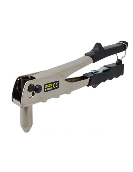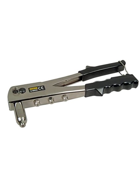Remachadora ciega, cabeza de ángulo recto, 6-MR55. Construcción de acero resistente y robusta. Salida automática del mandril exterior de remache y alicates. Se suministra con una llave inglesa y una cabeza remachadora para remaches ciegos de 2 mm, 3 mm, 4 mm y 5 mm. Remaches de acero y aluminio con 2 mm (3/32"), 3 mm (1/8"), 4 mm (5/32") y 5 mm (3/16") de diámetro.