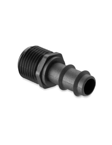 Entronque roscado 1/2"-20mm. para tubo de polietileno de 16mm. o para tubería exudante. Permite unir tubería de PE de 20mm a una rosca, muy utilizado para sacar ramales desde una toma collarín.
