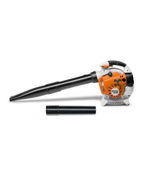 Potente soplador con caudal de aire para limpiar hojas caídas, y restos de poda/siega en grandes superficies. Posee boquilla redonda y boquilla plana, motor 2-MIX, sistema antivibración y palanca de aceleración con botón de Stop.