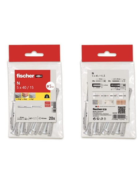 • Aplicación: esta combinación de tacos y tornillos están especialmente indicados para la sujeción de subestructuras fabricadas en madera, conexión de muro o perfiles de yeso, grapas para cables y tuberías, cintas perforadas.