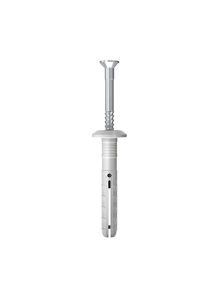 • Modo de empleo: al tratarse de un taco con tornillo incorporado, solo debe colocar el taco en el orificio y golpearlo con un martillo, hasta introducirlo completamente, quedándose listo para su utilización.