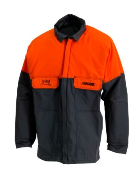Chaqueta con protección anticorte en pecho y brazos, especialmelmente reforzada en el brazo izquierdo. Alta visibilidad, gracias a su llamativo color. Ideal para trabajar en terrenos boscosos. Tejido externo sólido, resistente y duradero de alta densidad. Color Naranja-Gris.